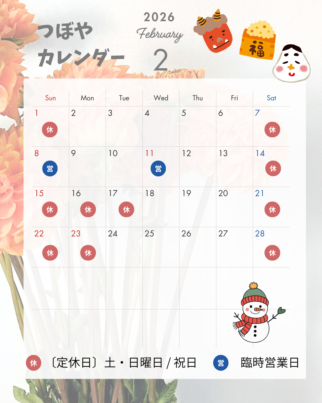 ◆◇◆ 2026年 2月 つぼやカレンダー(2/1現在)◆◇◆