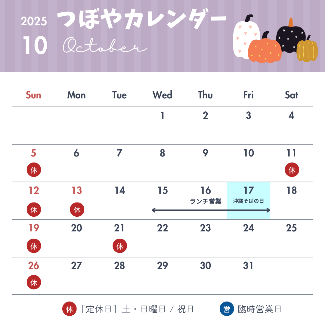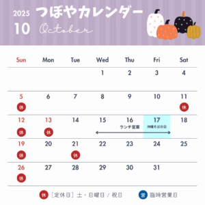 ◆◇◆ 2025年 10月 つぼやカレンダー(10/1 現在) ◆◇◆